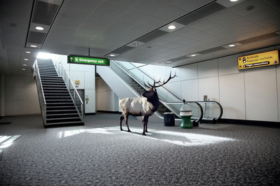 La série de photos réalisée par le photographe Mikel Uribetxeberria pourrait illustrer cette réflexion. Il a mis en scène des animaux sauvages dans des endroits inhabituels pour eux. Cette série de photos s'intitule Animalia. Génial !